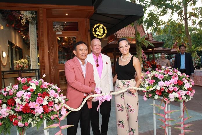 Privy Councillor Gen. Paiboon Khumchaya officiated at the opening ceremonies by cutting ribbons to officially declare the Sun Sabella Classical Thai Restaurant, Nin & Co Patisserie and the Jazz Pit open. He congratulated Dr Sunya for finally making his dream a reality by building this exquisite traditional Thai home to honour his parents Dr Samak, and Dr Isabella McKinnon Robertson.