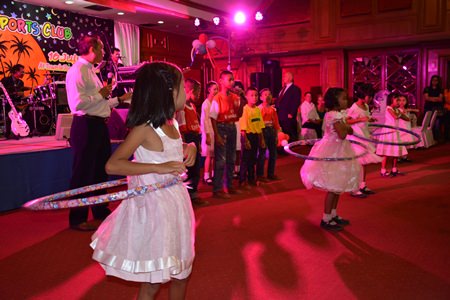 At 1900, Nigel went on stage to welcome everyone and confirmed the members of the PSC Committee as were elected at the recent AGM. Charity Chairman William Macey had arranged for 20 delightful children from the Fr. Ray’s Children’s Village, aged between 5 and 10, accompanied by Father Peter, to entertain the guests with 3 songs, 2 in English as well as some hoola dancing. Before they left the stage they had received a well deserved ovation. These children have no family to take care of them but they have the opportunity to live in a family environment to help prepare them for their adult years.