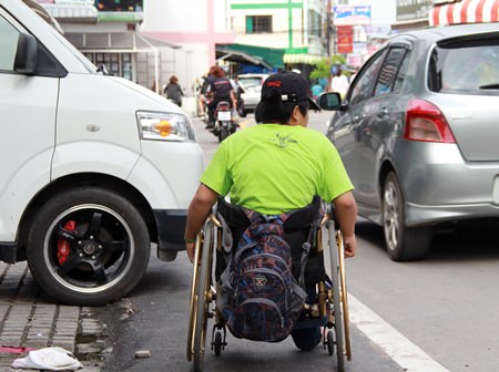 A build up of heavy traffic over recent years along the soi has resulted in an increase in accidents between cars or motorbikes and wheelchairs, including one recent fatality.