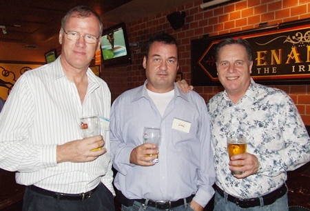 Which one is the slow drinker? (l-r) Clive Butcher (Transearch), Joe Barker-Bennett (MD JMBB Consulting Co. Ltd.), or Simon Matthews (Country Manager Thailand Manpower Group).