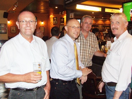 Not enough room at the bar. (l-r) Dr. Ulrich Stork (Compressor Sales & Service), John Hamilton (Waste Management Siam), Okko Sprey (Plus Exploration Co. Ltd) and Gerhard Hein (Compressor Sales & Services).