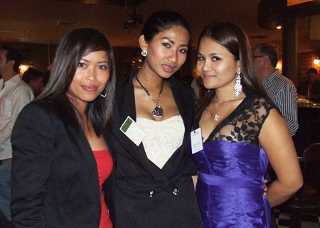 Three beautiful girls added glamour to the event. (l-r) Naree Peehtakua (Vistas Development), Chalanda (Hosting Group) and Kanyarat Wedphitak (CEO Carter Jewelry).