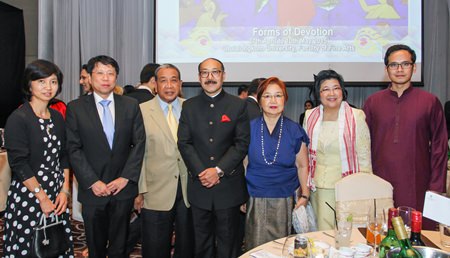 (L to R) Vice Minister for Education Dr Teerakiat Jareonsettasin and his wife, along with Principal Private Secretary to HM the King Krit Garnjana-Goonchorn, Indian Ambassador HE Harsh Vardhan Shringla; Ravewan Garnjana-Goonchorn; Deputy Minister of Tourism Assoc. Professor Chavanee Tongroach, and Assam Member of Parliament Gaurav Gogoi.