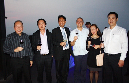(L to R) Tomo Kuriyama (GM Sheraton Pattaya), Dimitri Chernyshev (Exec. Asst. Manager Pullman Pattaya Hotel G) and Peter Malhotra (MD Pattaya Mail Media Group) pause for a moment from admiring the spectacular view.