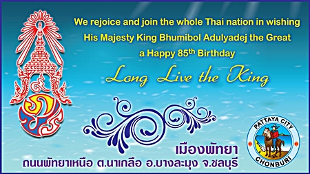 The Pattaya Mail Media Group joins the entire Kingdom in humbly extending our best wishes of loyalty and devotion to His Majesty King Bhumibol Adulyadej the Great, the World’s Longest-Reigning Monarch on the auspicious occasion of His 85th Birthday, December 5, 2012.