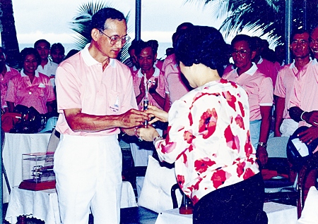 Throughout the pages of successive years of the Pattaya Mail and the Bangkok Post, as well as such in-fight magazines as Sawasdee, Thailand’s leading yachting correspondent, Peter Cummins, has chronicled the incomparable contributions His Majesty the King has made to the Thai sports men and women and a huge spectrum of Thai sports.