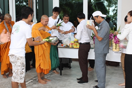 Top hotel executives hosted the Oct. 1 occasion by inviting nine monks from Nong Yai Temple to its Havana Bar & Restaurant to perform a blessing ceremony. Employees offered alms and presented them with dried food and basic necessities.