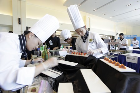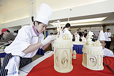 The Aug. 8-10 event at the Royal Cliff’s Peach Convention Center featured more than 20 contests in everything from fruit carving and drink-mixing to deserts and Thai set menus. Cooking contests pitted professional chefs against each other and offered opportunities for rising university stars to try their hand at deserts, plate arrangement, Thai and European dishes, flower arranging and cocktail mixing.