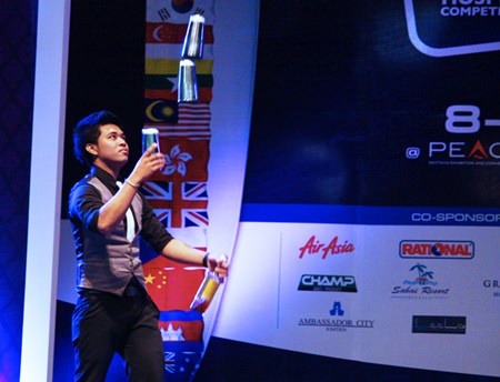 Jarinth Suttiwaja shows off his bartending skills in the Mekong Pattaya Signature Drink Menu Search competition.