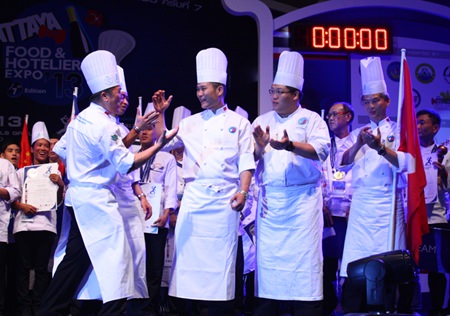 The Hong Kong team is ecstatic about winning the Pattaya City Culinary Cup 2013.