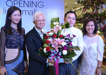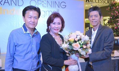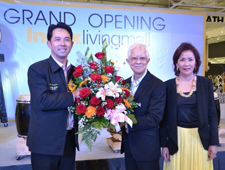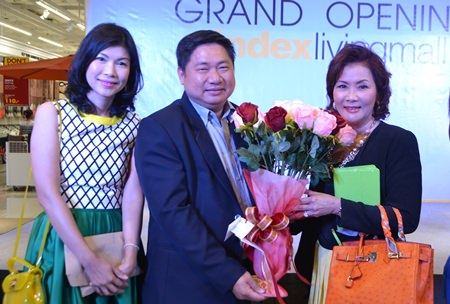 Kamolthep Malhotra, General Manager of Pattaya Mail Media, congratulates Kridchanok and Pisit Patamasatayasonthi on the opening of Index Living Mall’s newest branch in Pattaya.