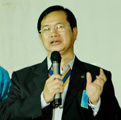 Father Picharn Jaiseri, president of the Rotary Club of Pattaya for 2013-14, presides over the ceremony.
