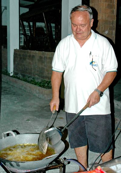 Past district governor, Premprecha Dibbayawan cooks up a storm to feed the children and the adults.