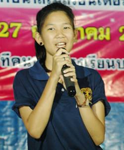 Lalita Phetphuang proudly wears her presidential seal from the Banglamung School Interact Club.