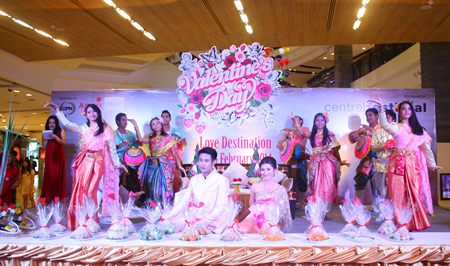 At Central Festival Pattaya Beach, Mayor Itthiphol Kunplome, Amari Orchid Resort & Tower Residence Manager Richard Margo and mall General Manager Theeraporn Jitnawa hosted a wedding fair featuring Thai, Chinese and Indian styles, a long-drum procession, a Japanese paper wedding dress show by Rajamangala University of Technology Thanyaburi students, stage performances and ice sculptures.