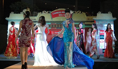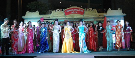 Contestants strut their beautiful Qipao fashions along the catwalk.Contestants strut their beautiful Qipao fashions along the catwalk.
