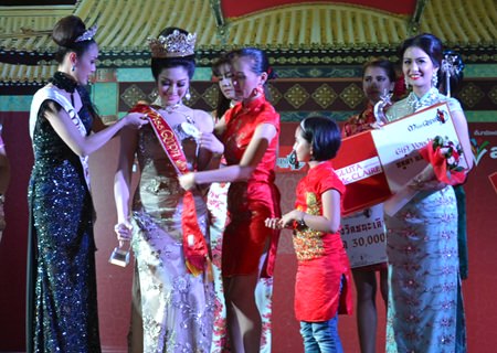 Miss Qipao 2013 Sripatsorn Buasuang awards her crown to Miss Qipao 2014 Getmoli Rojanapradit.Miss Qipao 2013 Sripatsorn Buasuang awards her crown to Miss Qipao 2014 Getmoli Rojanapradit.