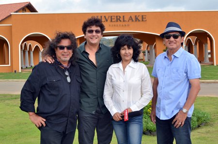 (L to R) Dennis Dila (PR) from Silverlake Vineyard; John Nuvo, leading rock artist from Thailand; Sue Kukarja, PMTV Communication Director; and Surachai Tangjaitrong, owner of Silverlake Vineyard.