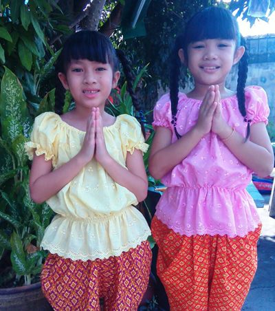These young girls wish one and all a Sawadee Pee Mai with a courteous ‘wai’.