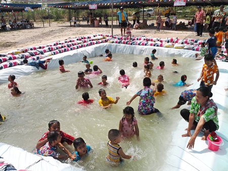 Sattahip residents built a special swimming pool for the children to romp around in and stay cool.