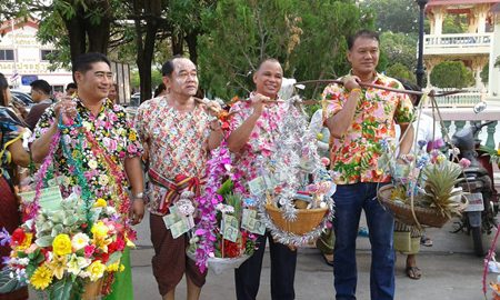 Naklua celebrated its wan lai on April 18, with the festivities taking place at Lan Po Public Park. The day began at 7 a.m. with a food offerings to 99 monks and pouring water on Buddha statues.