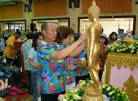 The following day on Tuesday April 19, Pattaya and Jomtien held similar ceremonies with the pouring of water on monks, the elderly and worshipping the Buddha images at Wat Chaimongkol.