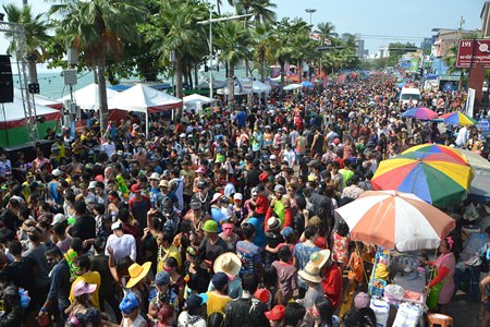 While Songkran is observed for three official national holidays April 13-15 and with “wan lai”, or water-throwing days, for a day or two in different parts of the country, Pattaya starts when it begins and only stops after everyone else, except Phra Pradaeng District in Samut Prakan.