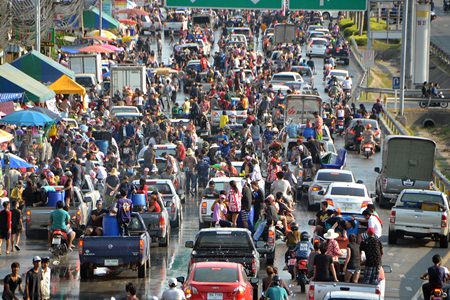 Songkran’s water wars ended Tuesday, but the official end of the holiday period was on April 20 with a rice festival at Wat Suttawat Temple. Believers gathered at the holy grounds where they perambulated 3 times around the main temple before giving alms to the monks. This tradition is also believed to bring the participants good fortune and healthy, longer life.