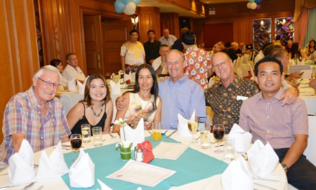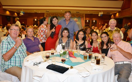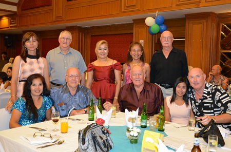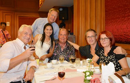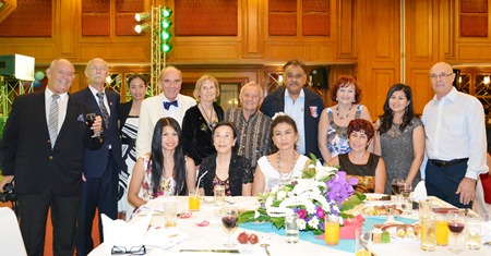 Distinguished guests included Rodney Charman (left) President of the Rotary Club Eastern Seaboard, Otmar and Margret Deter, Rotary E-Club Dolphin Pattaya International, Bernie Tuppin (standing centre) charity chair of the Jesters Care 4 Kids and Elfi Seitz (standing 3rd right).