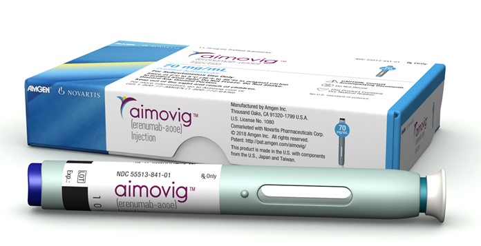 Amgen Inc. of Thousand Oaks, California, and Swiss drug giant Novartis AG developed Aimovig. Injected monthly just under the skin using a penlike device, the drug will cost $6,900 per year without insurance.