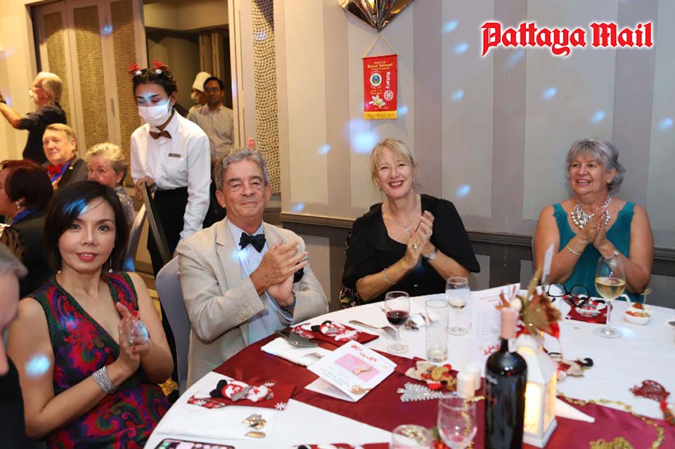 The Siam Bayshore Resort Pattaya, Parkview Ballroom was again ideal for us hosting a fantastic attendance full house of 180 guests. Those attending represented the RCES, and tables hosted by 6 other Rotary Clubs from around Pattaya, Chantaburi and Sattahip, joining us also were numerous supportive members of the Pattaya expat community as well as many local Thai friends and family. Our ‘Guest of Honour’ on the evening was HM Consul, British Embassy to Thailand, Joanne Finnamore-Crorkin along with her husband Colin Crorkin OBE.