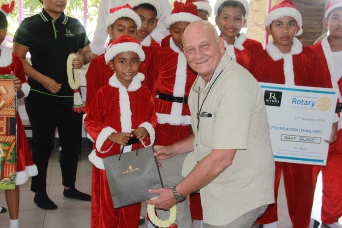 Club President Jo Klemm, Uboljit Thumchob, marketing manager for the Rivera Group, and Jan Abbink of Rotary District 3340 presented the donation to HHN Director Radchada Chomjinda at the foundation’s Drop-In Center Dec. 17.