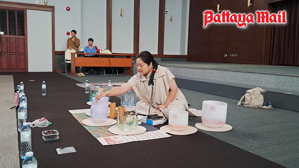 Participants immerse themselves in the soothing vibrations of crystal singing bowls at Ray Enterprise’s special wellness session in Pattaya.