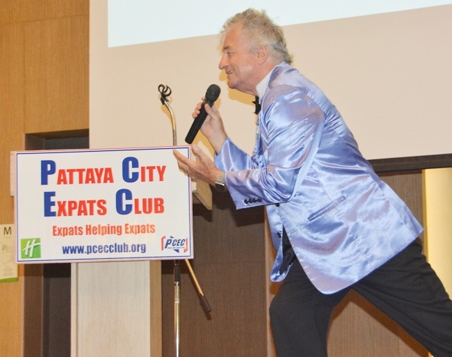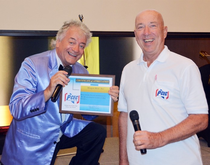 It was entertainment at its finest at the Sunday, July 21 meeting of the Pattaya City Expats Club (PCEC). The guest presenter was Morgan Kent Sr., a cabaret artist, impressionist, singer and comedian. Morgan has performed on all major cruise lines with his show “Tonite’s the Nite with Rod Stewart”. As a prelude to Morgan’s show, Paul Rosenberg, a very talented guitarist performed as members and guests enjoyed their breakfast. Paul is also proficient in playing the saxophone, drums, double bass, and other instruments.