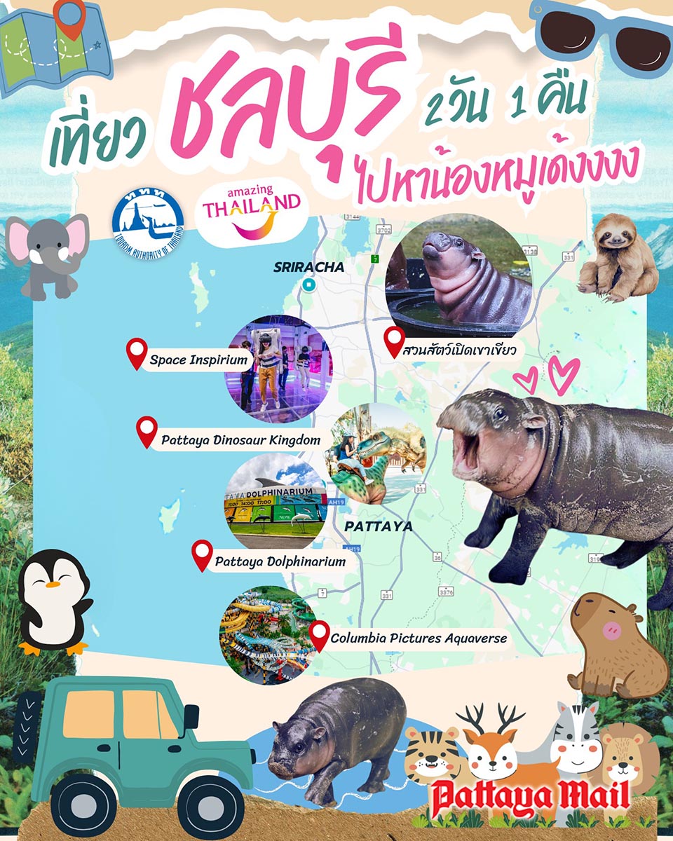 CHONBURI, Thailand – Looking for a perfect family getaway during the school break? Chonburi is the ideal destination! Kick off the adventure by visiting the famous ‘Moodeng’, the adorable baby pygmy hippo at Khao Kheow Open Zoo, and continue exploring educational and fun-filled activities in both Sriracha and Pattaya. Here’s a 2-day, 1-night itinerary that guarantees your little ones will enjoy, learn, and return home with smiles and new knowledge.
