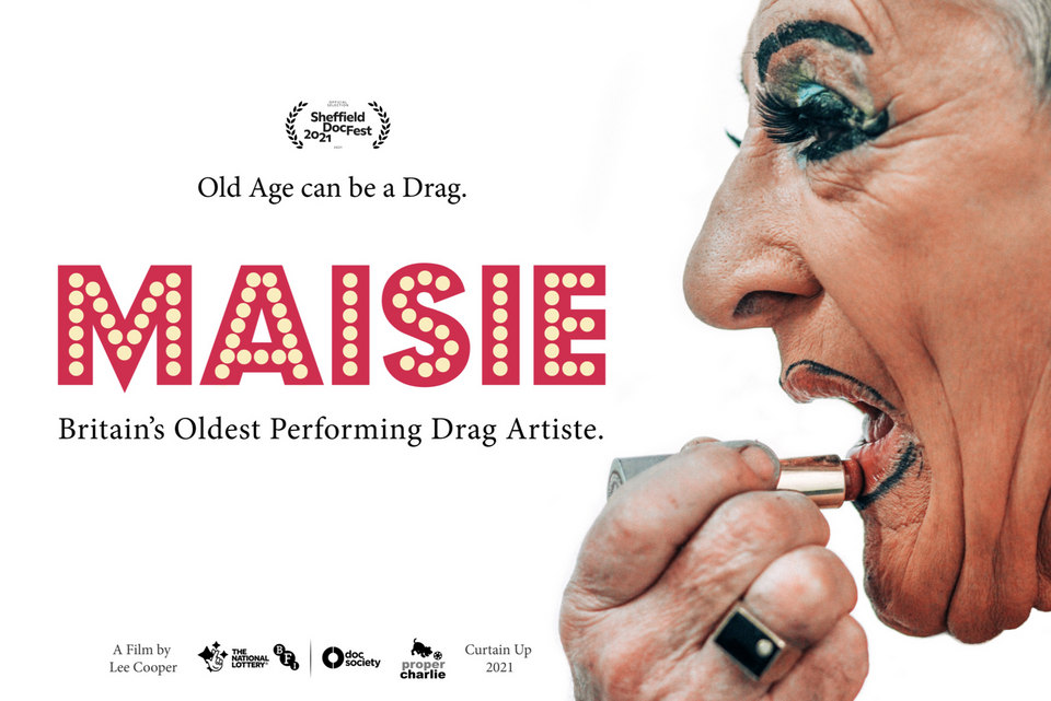 Maisie, born in Cornwall, is now 89 and regarded as the oldest-working drag artiste in the UK. She made her reputation in crowded post-war London pubs, now mostly closed or demolished, and moved to Brighton in the 1970s where she has become a leading gay icon. Age has obviously left its marks and she now sits on a stool to sing her routines and exude that waspish humor which is the hallmark of English drag. She is in the early stages of dementia and is dependent on Donepezil medication.