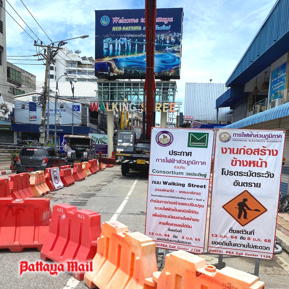The beaches are back in business too. On Jomtien promenade, most of the deckchairs had been uncovered from their binding ropes, but Pattaya was less fortunate. Here, the alleged beautification of the main sand stretch means that bulldozers and tractors deter even the hardiest sun worshipper, whilst some sections are completely barricaded. At the south end of the beach area, the Walking Street is entirely blocked by the vehicles of the provincial electricity authority which is burying the overhead cables. Of course, the bars and clubs are closed by order. So it really doesn’t matter.