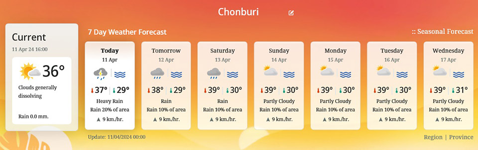 7 Day Weather Forecast in Chonburi.