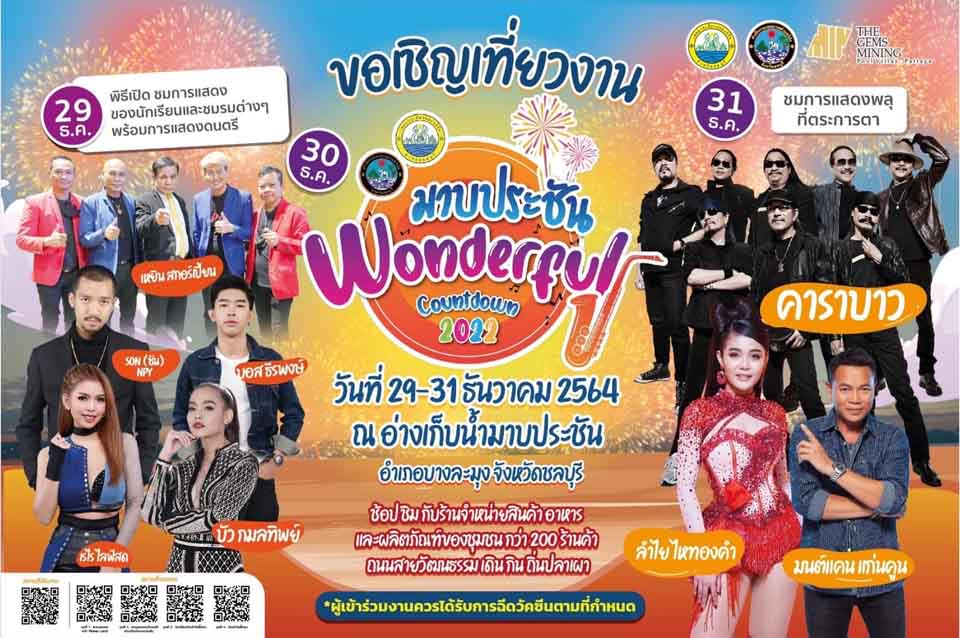 Pattaya suburbanites can celebrate New Year’s Eve without going into town at the Mabprachan Wonderful Countdown 2022 Dec. 29-31.