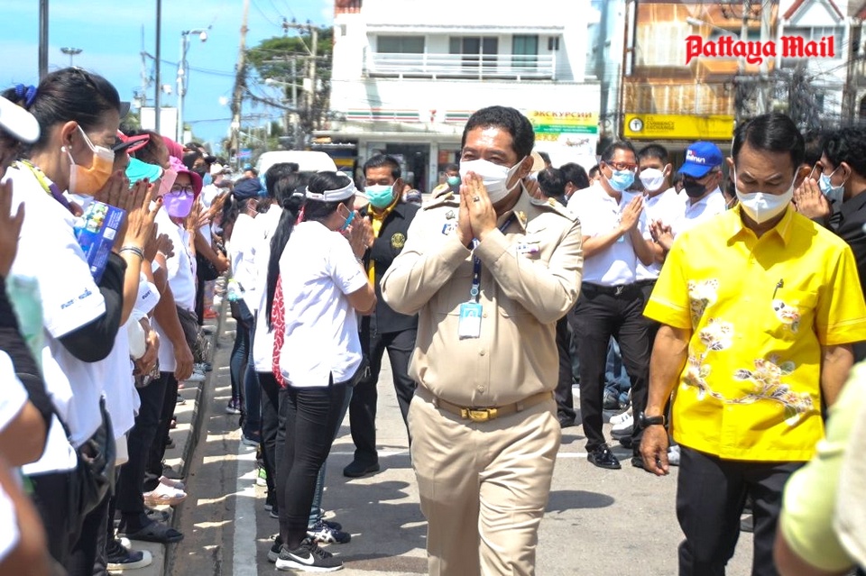 Sonthaya and his aides walked around Pattaya and Jomtien beaches, greeting beach chair vendors and beach masseuses to give them moral support and assure them that the end of desperate economic times is near.