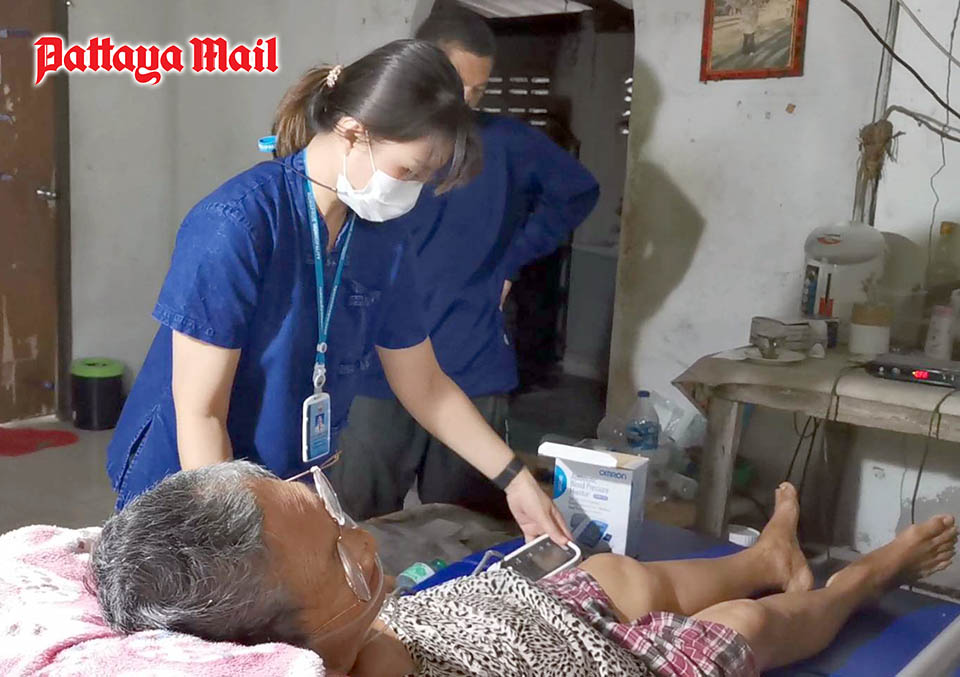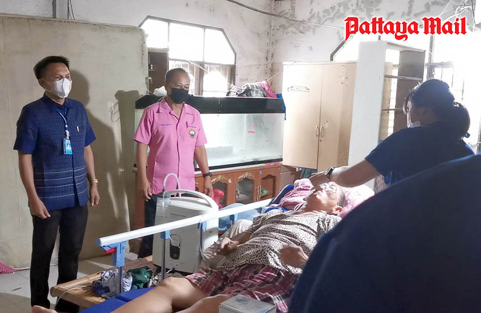 Nongprue Mayor, Wanchai Sanngam, accompanied by Nongprue Municipal members, and officers of the Social Welfare Division, Muang Nongprue Municipality paid a visit to 66-year-old Mrs. Somnuk Sukkampan, a lung cancer patient on Tuesday Nov 15. Last year, Mrs. Somnuk found that she had lung cancer and had gotten medical treatment at Banglamung Hospital. Presently, the doctors provide medical care according to her symptoms. Now, she got better and was allowed to get nursing care at home.