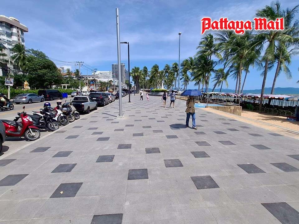 PATTAYA, Thailand – The long-awaited improvements to Jomtien Beach are steadily taking shape, with new sidewalks, expanded lighting, and parking capacity for more than 700 vehicles now in progress. Authorities are also addressing chronic flooding issues by installing larger drainage pipes and water retention basins to better manage rainwater.