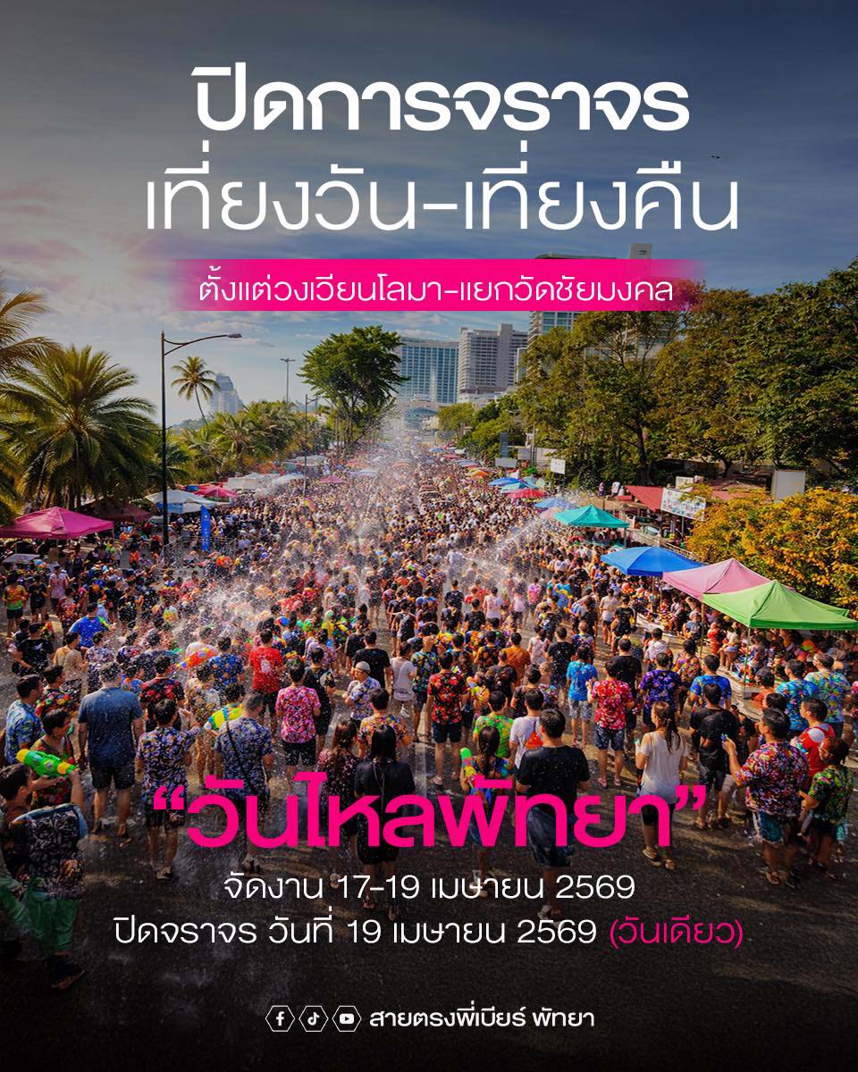 The city’s main highlight, “Wan Lai Pattaya” on April 19, is expected to draw massive crowds, prompting strict traffic controls and full beach road closures to manage safety and congestion.