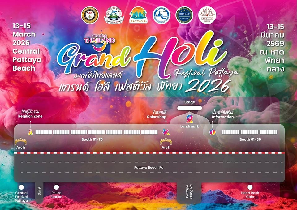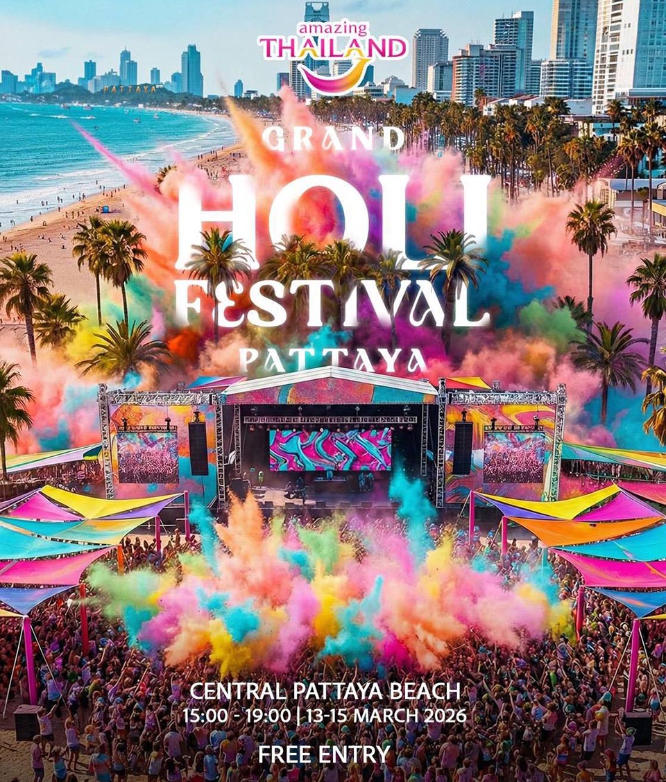 PATTAYA, Thailand – Get ready for an explosion of color, music, and seaside celebration as the Amazing Thailand Grand Holi Festival Pattaya 2026 returns to the shores of Pattaya Beach from March 13–15.