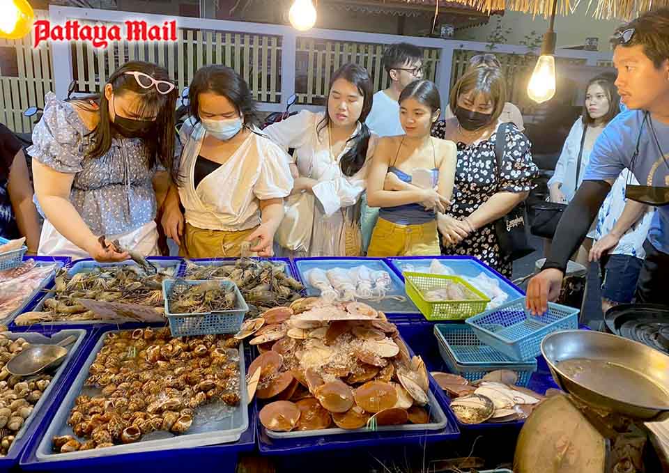 Sellers reported brisk sales Feb. 26-27 as nearly 10,000 people a day visited the Pattaya resort island. Crab, shrimp, squid, shells and various types of fish were all in high demand.