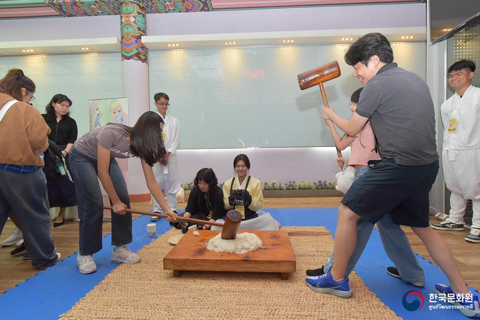 Participants also enjoyed tasting Tteok Mandu-guk (Rice Cake Soup) and seasonal Korean strawberries, along with a variety of interactive cultural activities. These included traditional rice cake pounding, Hanbok wearing, Hojakdo painting, Yut-jeom fortune telling, and traditional games. The event concluded with a lucky draw featuring Korean  products. (NNT) (Photo Courtesy of Korean Cultural Center in Thailand)