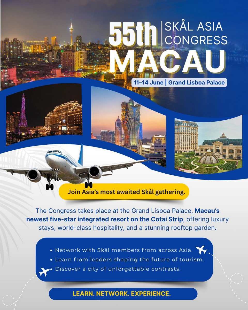 The upcoming Skål Asia Congress will be held in Macau from June 11–14 at the Grand Lisboa Palace, gathering industry leaders from across the region. On the global stage, the annual Skål World Congress remains the organization’s flagship event. The 2026 Skål World Congress will take place in Cape Town, South Africa, from October 5–10, continuing the tradition of rotating destinations and reinforcing Skål’s commitment to international collaboration.