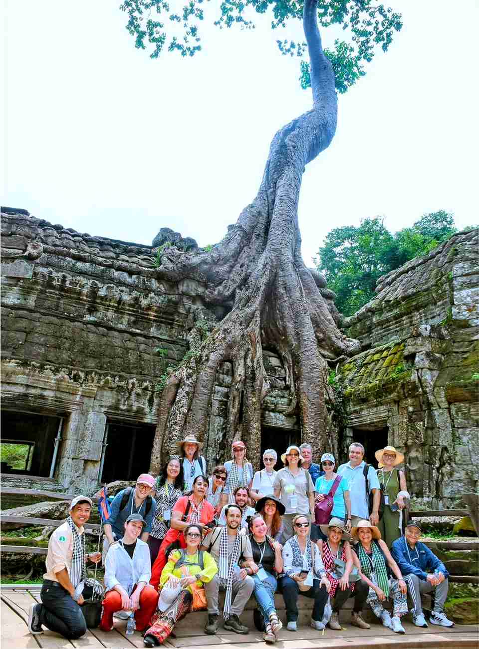 A group of foreign tourists enjoy the wonders of Cambodia’s Angkor Wat.