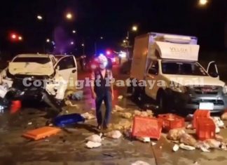 Oysters, chickens fly when trucks collide near Pattaya
