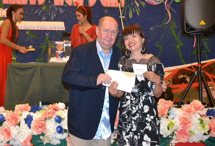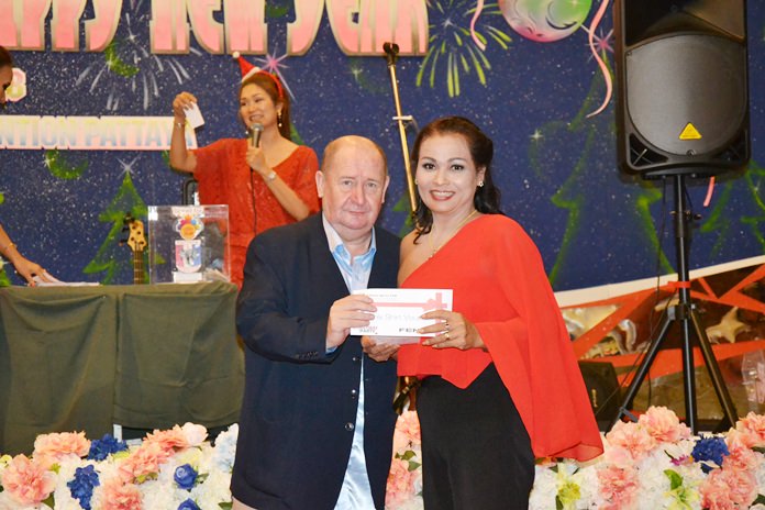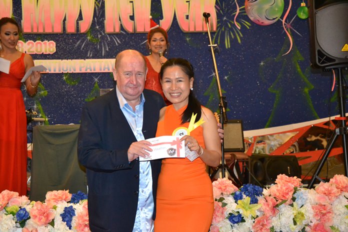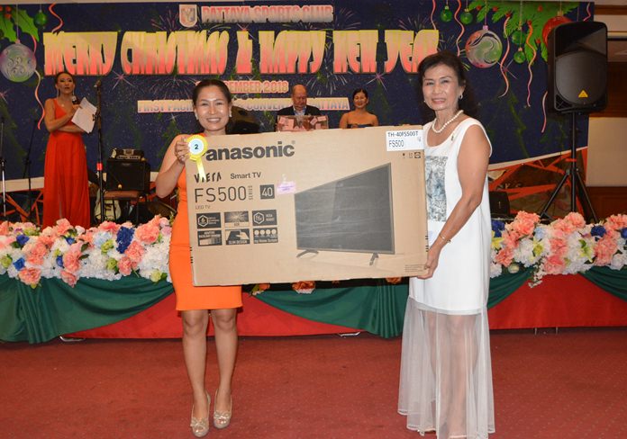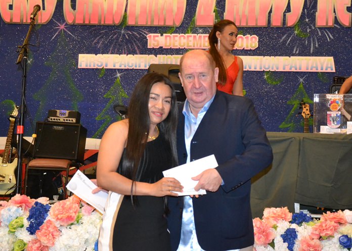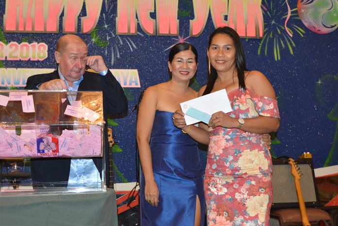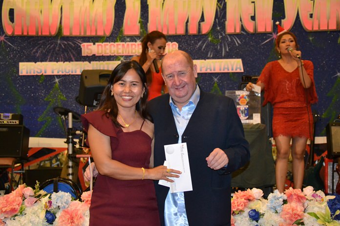 The highlight of the evening was the drawing of raffle prizes. Not only did the PSC sponsor many valuable prizes, but we also received many prizes from our generous sponsors. They included Parichat International Golf Links and Southpoint Condominium Pattaya, represented by Ana Wongsing, Wanwisa Suksamran, Pattarachok Tangcharoenworakul and Isara Uchuparp, who sponsored 10 cases of beer and 5 membership cards at Parichart-Bangpra worth 5000 baht each.